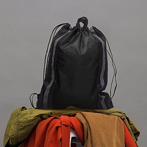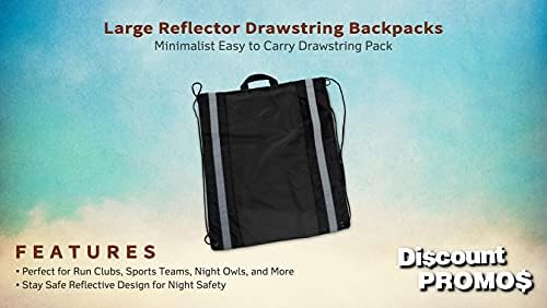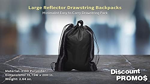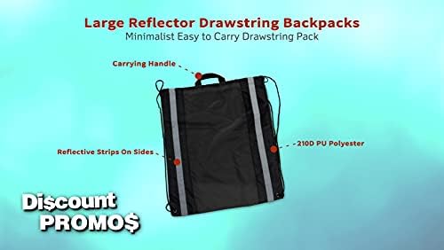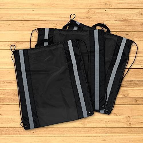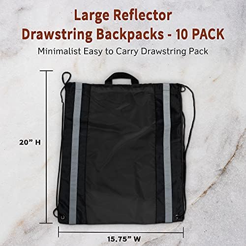 10 Large Reflector Drawstring Backpacks Set – Durable, Reflective Strips, Handle On Top – Black