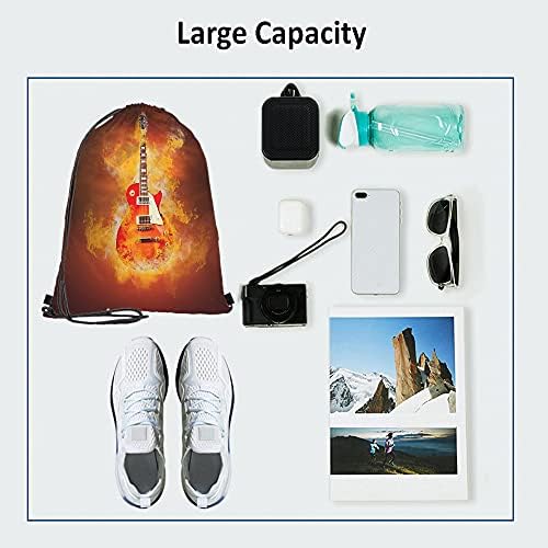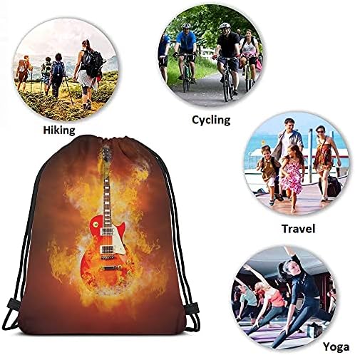 1.PRODUCT SIZE: This Guitar Drawstring Backpack measures 14×16.9 inch,with Double-sided printed graphic,which is big enough for carrying a variety of items such as gym clothing, shoes, school books, sporting gear, daily supplies, etc, optimal for any indoor or outdoor activities.