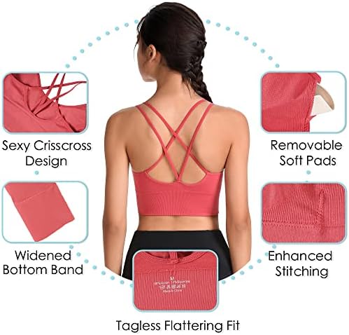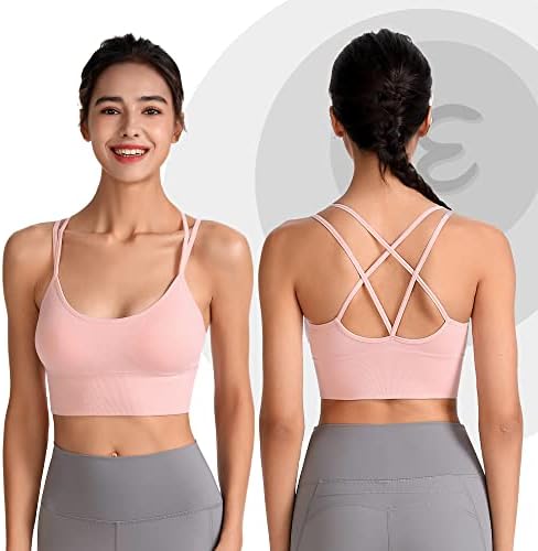 Evercute Cross Back Sport Bras Padded Strappy Criss Cross Cropped Bras for Yoga Workout Fitness Low Impact