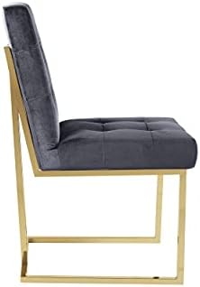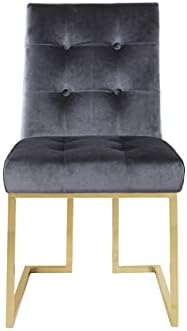 Iconic Home Liam Contemporary Brass Metal Frame Modern Tufted Velvet Polished Dining Side Chair, Grey (Set Of 2)