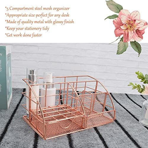 5 Compartment + drawer steel and mesh organizer with well-thought-out dimensions for your desk accessories.