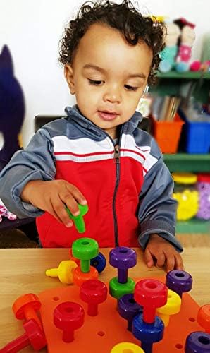 The peg toy has OVERSIZE PEGS which are easy for little hands & fingers to grasp and stack on the peg boards and together to build towers as stacking blocks. The size of the infant toys are ideal occupational therapy toys for children and adults. The unisex rainbow colors make them the best18 month toys for toddler gifts as they work as toddler toys for boys age 2 and as toys for 2 year old girls. Use for daycare supplies as manipulatives in toddler activities or as montessori toys for toddlers.